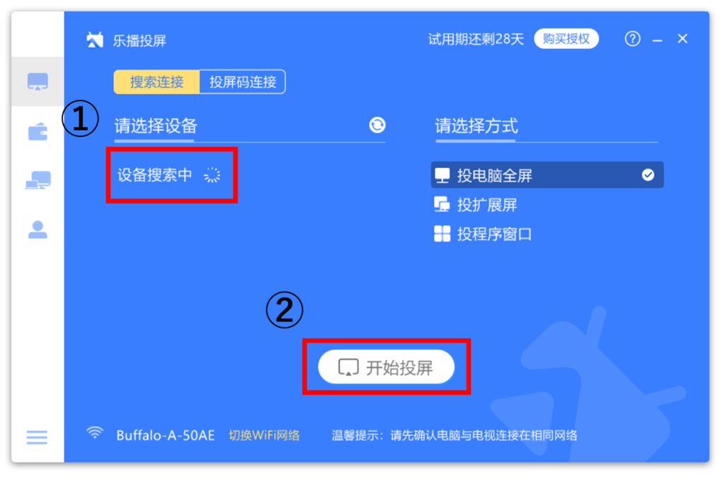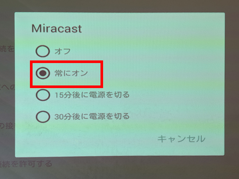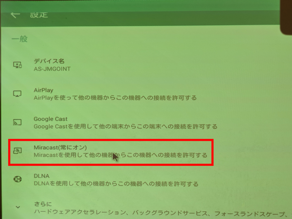 ①の赤枠部にJmGON7Lが出てきた後、②のボタンをクリックするとミラーリングが始まります。